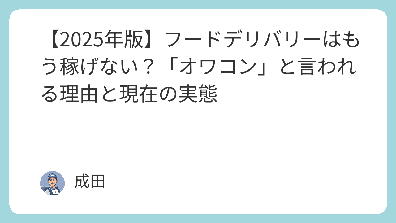 📉 「フードデリバリーはもう稼げない」は本当か?その噂の正体と現在のリアル